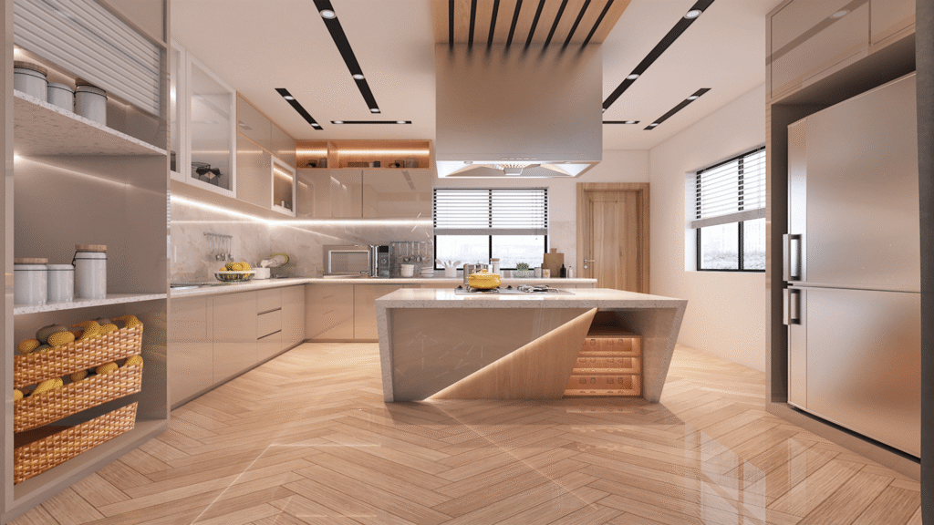 We don’t overwhelm the space with excess. Instead, we focus on proportion, light, circulation, and material harmony. Every cabinet, counter, and corner is placed with intent. A kitchen should feel effortless to use, yet refined in presence.